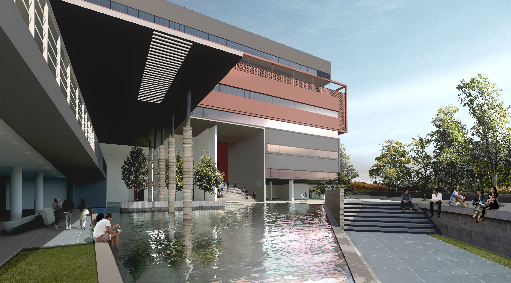 The design of this Academic building of around 500,000 square feet spread across 8 floors attempts to break out of the inevitable repetitiveness of typical classrooms by creating spaces of various volumes at various levels, streamlining connectivity between departments, and a mixture of closed and open gathering and spillover spaces at the ground level.