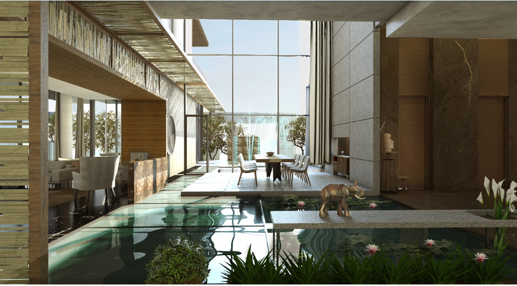 A luxury contemporary villa located amidst a 18-hole championship golf course in the prime location of Dubai- the Dubai Hills Estate, overlooking the Dubai skyline. The scope involved rethinking of the architectural design of the villa to suit the client needs, thus re-planning interior spaces and translating them with an elegant finesse. The interior design concept proposed was inspired by the tropical climate of Bali, Indonesia. The fluidity of the elements used in the design reflects the sophistication and elegance to these luxurious yet intimate spaces.