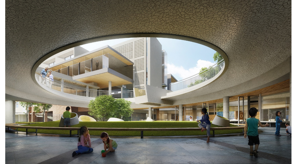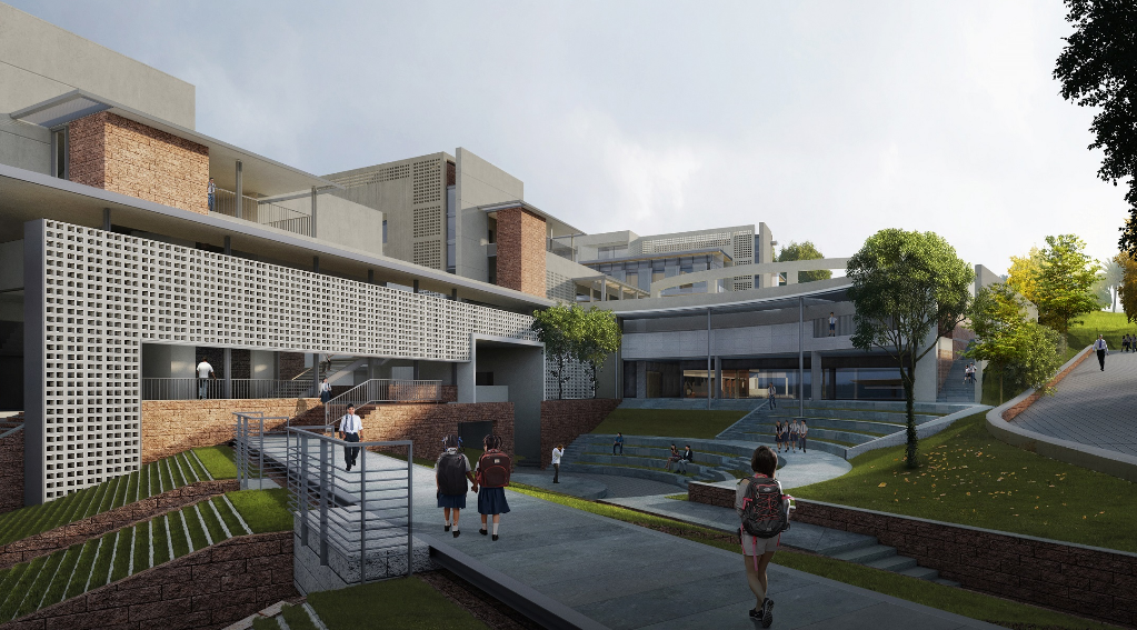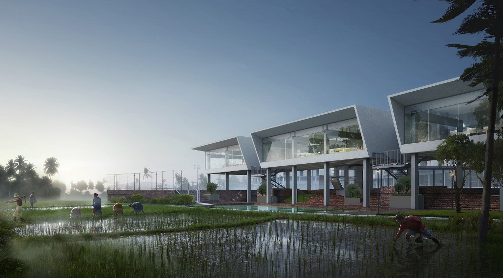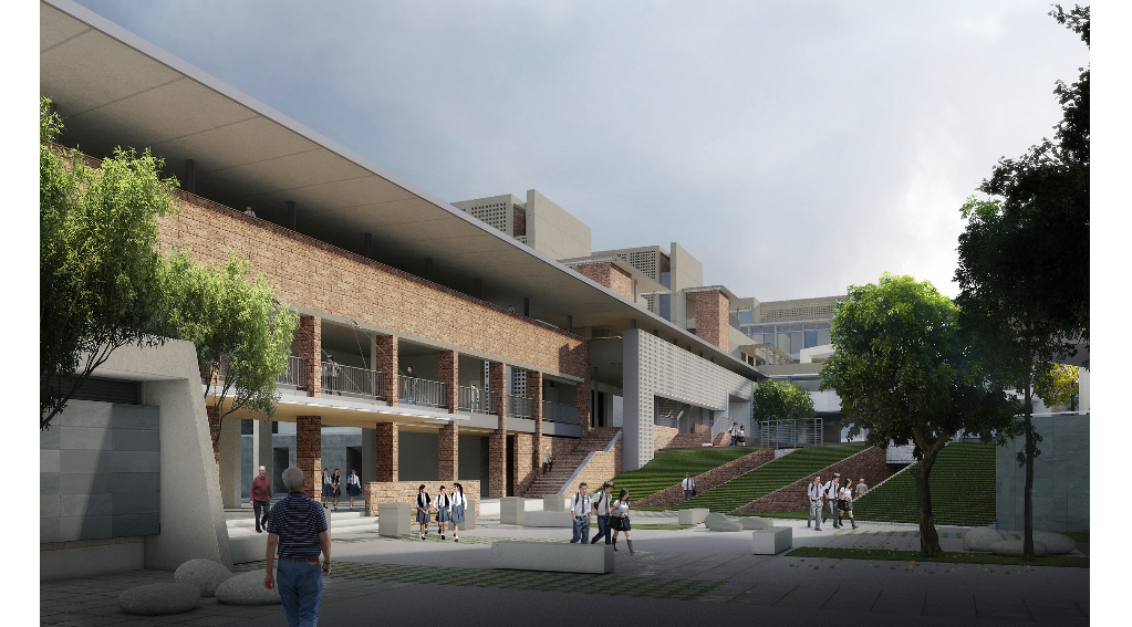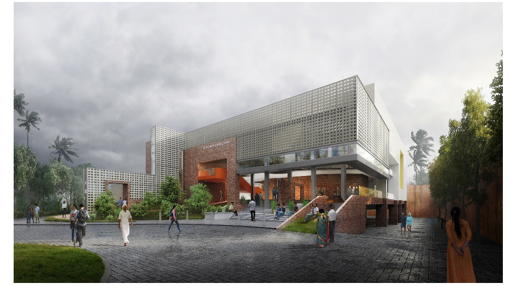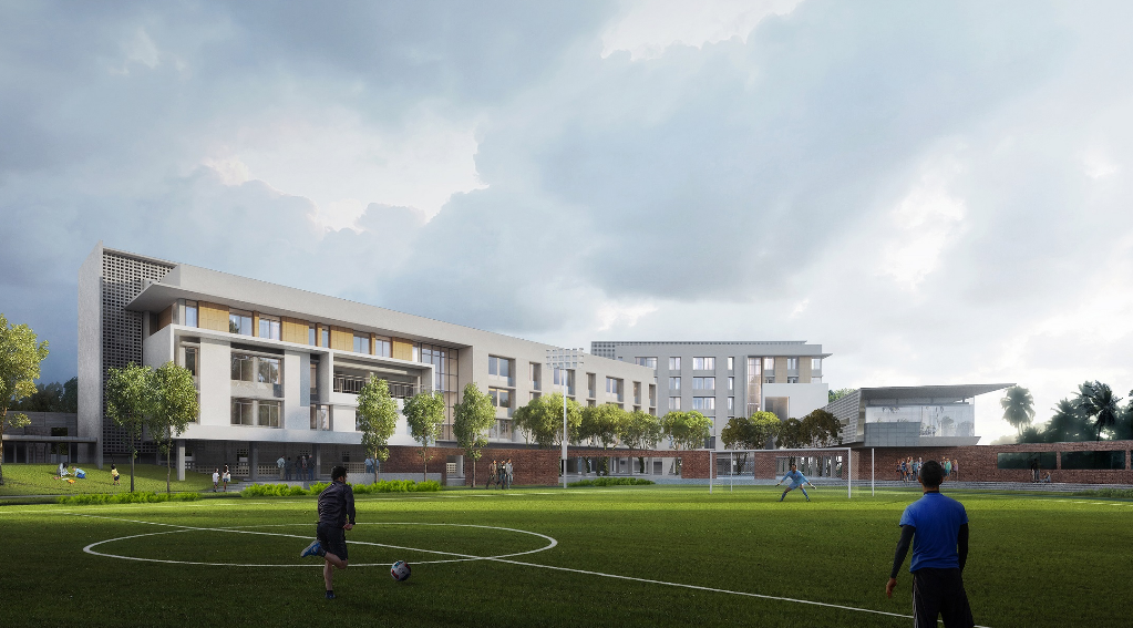 A 7.5 acre integrated campus in the outskirts of Kochi, the school comprises of academic blocks for classes from Kindergarten to Class 12, accommodation facilities for the students and the staff, a state of the art sports complex, an open air theatre and a performing arts center containing two theatres. The design attempts to annihilate the intimidating look of tall structures by maintaining a lower height for all the blocks, keeping the campus kid-centric. The challenge was to infuse all these low-rise blocks into the site, retaining its natural slope. Multiple courtyards and plazas link these blocks and these transitional spaces form the crux of the campus. Laterite stone, an indigenous material has been substantially used throughout the campus.